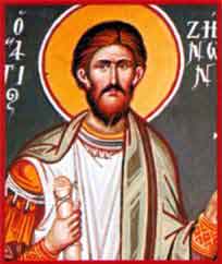 Ces Saints Martyrs étaient originaires de Philadelphie en Arabie *. Zénon servait dans l'armée romaine au temps de la persécution de Maximien. Désirant témoigner de sa foi au Sauveur par le sacrifice de sa vie, il distribua ses biens aux pauvres et libéra ses esclaves, puis il alla se présenter devant le gouverneur Maxime, célebre pour son zele dans le culte des idoles, suivi de son serviteur Zénas qui lui était resté attaché. D'une voix assurée Zénon reprocha au magistrat de dépenser en vain ses efforts pour ces illusions que sont les dieux paiens. Maxime ordonna aussitôt aux gardes de le flageller a coups de nerfs de boeuf; mais, bien qu'il fut retenu par les soldats, Zénon put étendre la jambe et renverser l'autel des idoles. Maxime, hors de lui, le fit alors étendre sur le chevalet pour lui déchirer les flancs, puis on frotta ses plaies avec du sel et du vinaigre avant de le jeter en prison, les pieds enserrés dans un étau jusqu'au quatrieme trou. Zénas, étant parvenu a s'introduire dans la prison, supplia son maître de ne pas etre séparé de lui, et, sur l'ordre de Maxime, il fut enfermé dans le meme cachot. Les deux valeureux athletes de la piété, soumis a l'interrogatoire, refuserent de renier le Christ, aussi furent-ils fustigés sans pitié, et on appliqua des tringles incandescentes sur la poitrine de Saint Zénon. Les bourreaux les suspendirent ensuite par les aisselles et leur attacherent de lourdes pierres aux pieds, puis ils les précipiterent dans une fosse embrasée et répandirent de l'huile sur leur corps. Comme ils avaient été miraculeusement préservés par la Grâce, ils remporterent la couronne de la victoire en étant décapités.