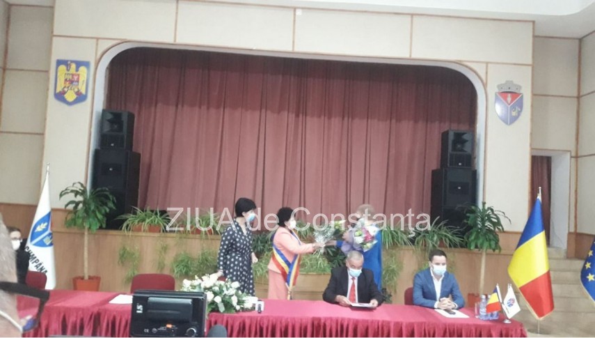 În aceste momente, urmează să depună jurământul Mariana Gâju. Elena Frâncu, cetațean de onoare al localității, fost director al Direcției pentru Sport, după un discurs, le-a înmânat câte un buchet de flori Marianei Gaju și Aurei Bozdoacă.
