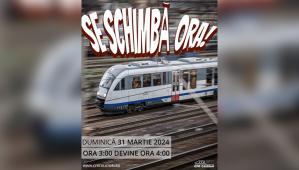 CFR Călători informează că, începând din data de 26 octombrie 2025, în activitatea de transport feroviar de pasageri se va trece la ora Europei Orientale (EET), astfel că ora 04:00 devine ora 03:00.Trecerea la ora Europei Orientale nu modifică mersul trenurilor în vigoare.