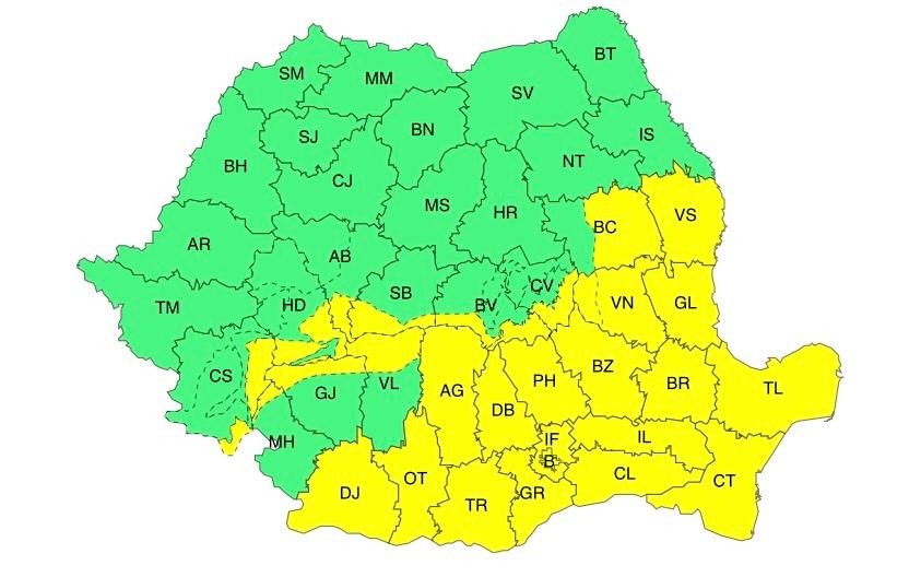 Cod galben de fenomene severe în Constanța. Măsuri luate de Comitetul Județean pentru Situații de Urgență