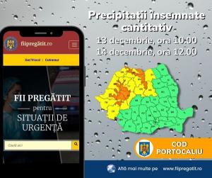 Atenționarea emisă de meteorologi este valabilă de astăzi, de la ora 18:00, până pe 09 ianuarie, ora 10:00.