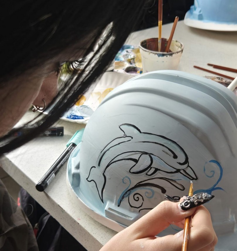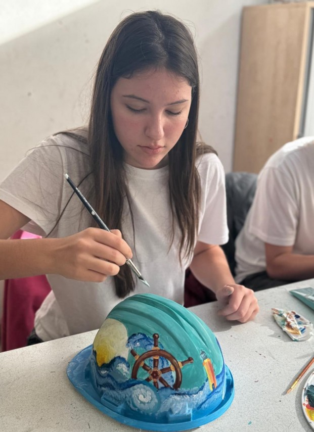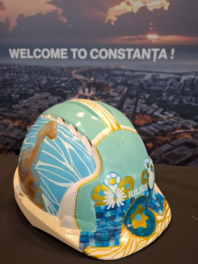 Compania IULIUS a invitat elevii Colegiului Național de Arte „Regina Maria” din Constanța să se exprime artistic pe un șevalet atipic – căști de protecție pe șantier (FOTO)