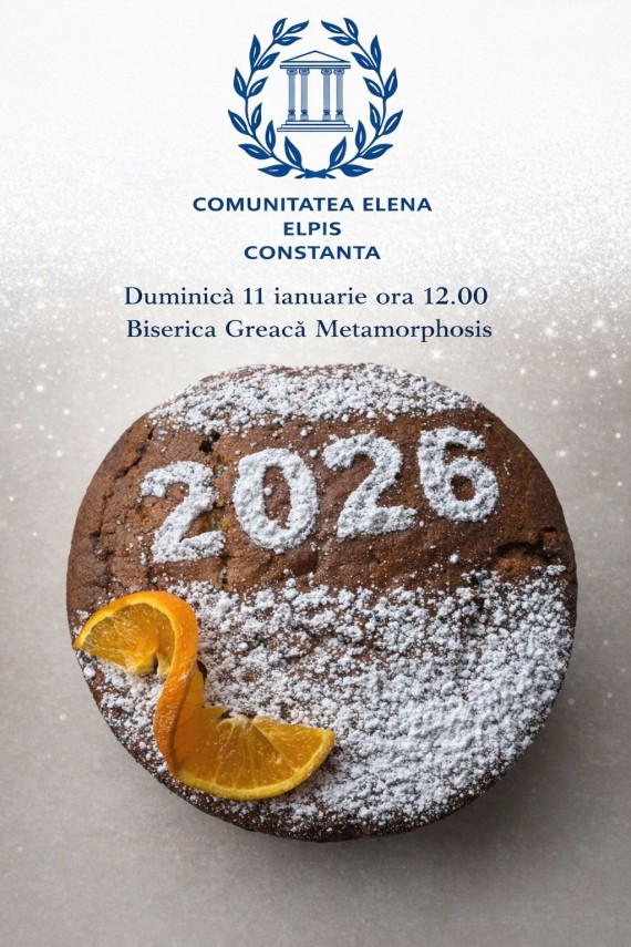 Comunitatea Elenă Elpis Constanța invită membrii comunității și publicul interesat să participe la tradiționala tăiere a Vasilopitei, eveniment care va avea loc duminică, 11 ianuarie, de la ora 11.00, la Biserica Greacă „Metamorphosis” din Constanța.