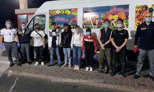 În urma analizei de risc specifice, poliţiştii de frontieră au procedat la efectuarea controlului amănunţit al mijlocului de transport. Astfel, în interiorul autoutilitarei au descoperit în compartimentul marfă, ascunse sub cutiile și sacii de pufuleți, nouă persoane, dintre care opt bărbaţi și o femeie.