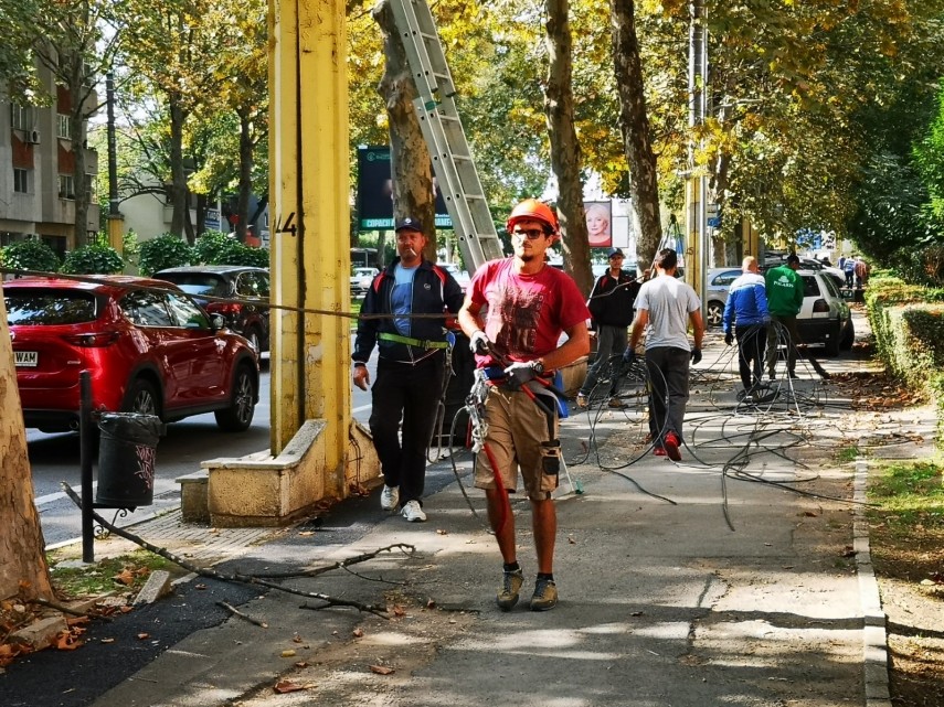 Constanța Lucrările de tăiere a cablurilor aeriene pe bulevardul Mamaia, se apropie de final (galerie foto)