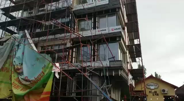 O schelă s-a desprins de pe o clădire, în zona Satu de Vacanță.Șapte autoturisme au fost avariate în urma incidentului.