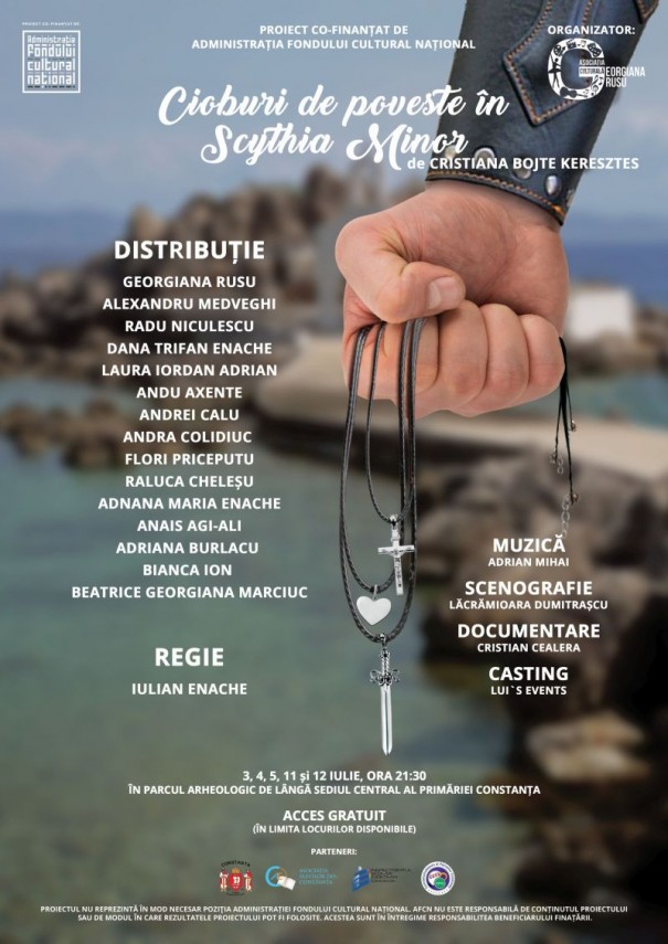 Publicul constănțean este invitat în zilele de 3, 4, 5, 11 și 12 iulie, la spectacolul de teatru cu temă antică, „Cioburi de poveste în Scythia Minor". Reprezentațiile vor avea loc în zona sediului Primăriei Municipiului Constanța, începând cu ora 21:30. Vor fi puse în scenă poveștile de viață ale unor persoane reale, cunoscute din inscripțiile grecești și romane descoperite în Dobrogea.