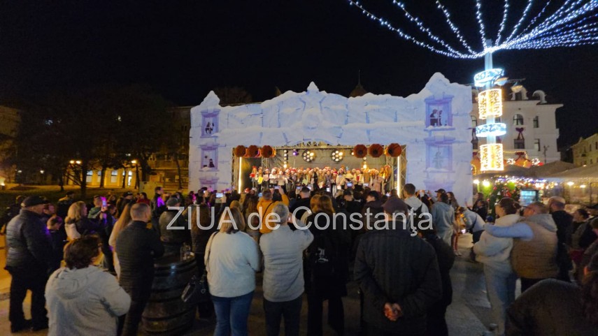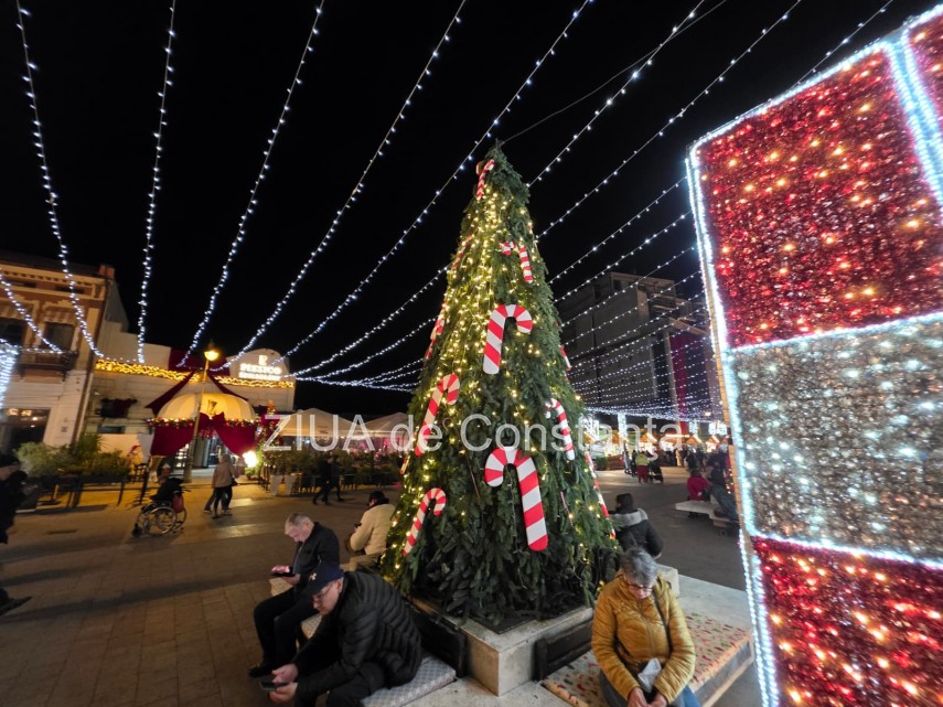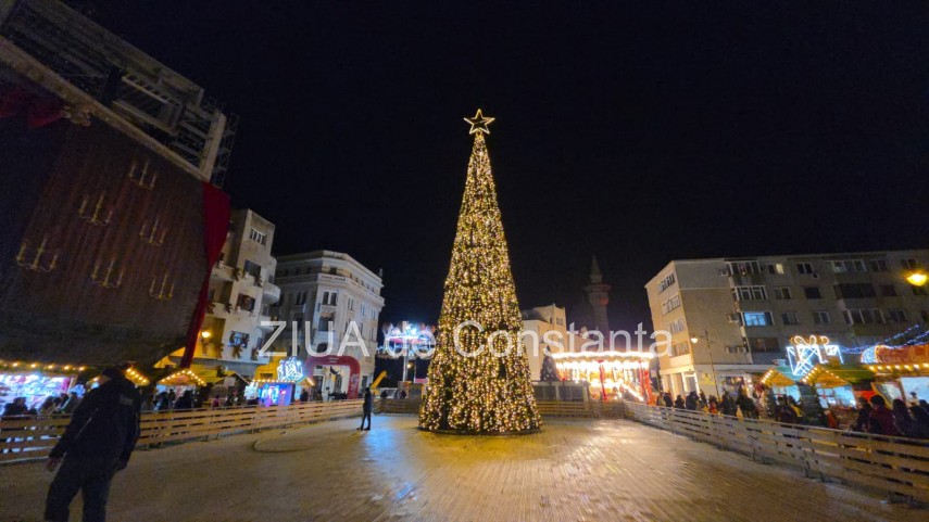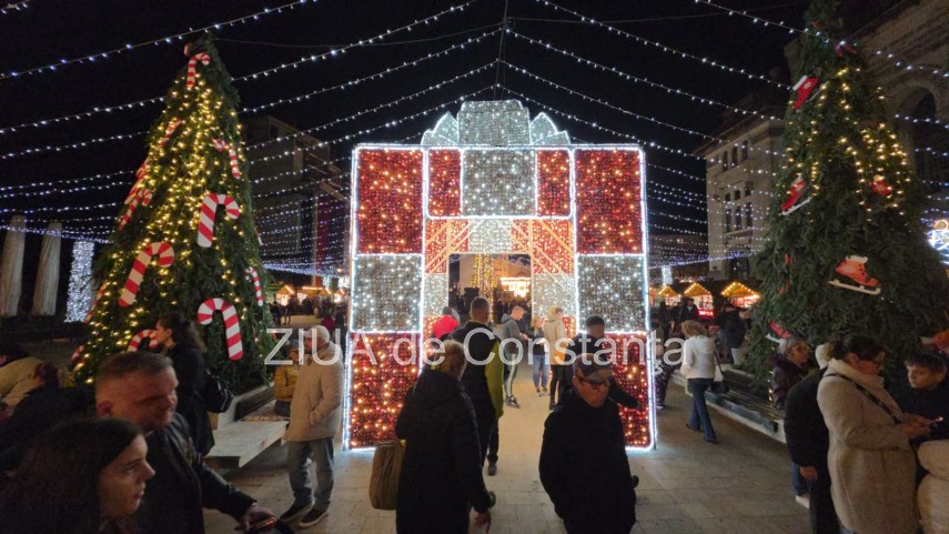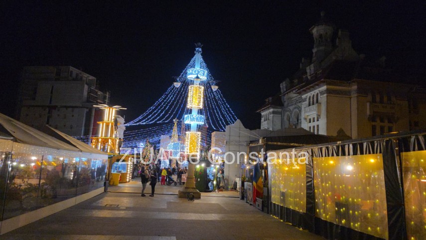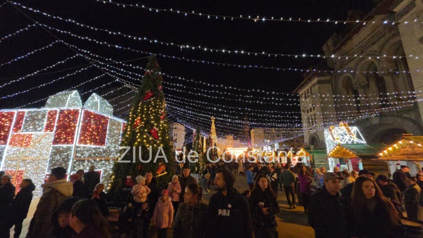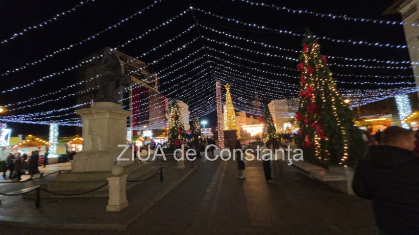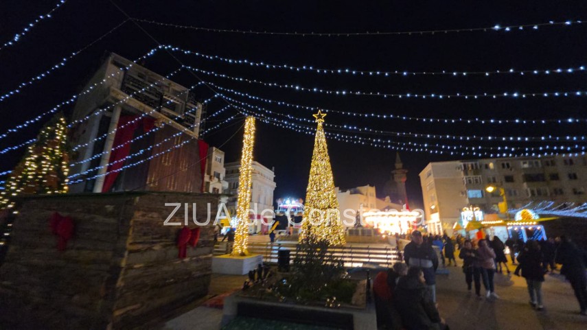 FOTO+VIDEO Târgul de Crăciun din Piața Ovidiu s-a deschis oficial! Luminițe, bunătăți și atmosferă de sărbătoare