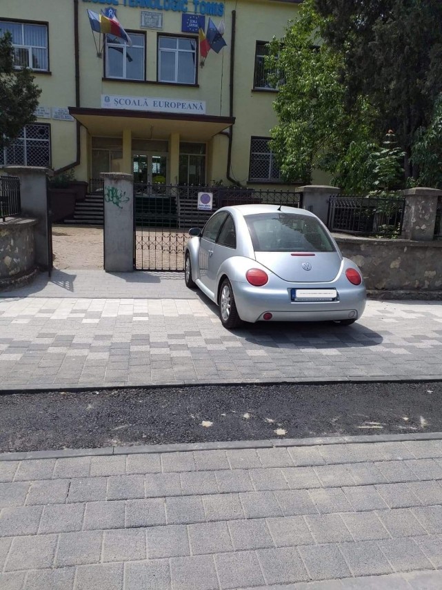 - Un alt șofer a parcat mașina pe trotuarul proaspăt reabilitat după ce săptămâna trecută Primăria Constanța semnala un alt autoturism parcat în fața Liceului Tehnologic „Tomis".