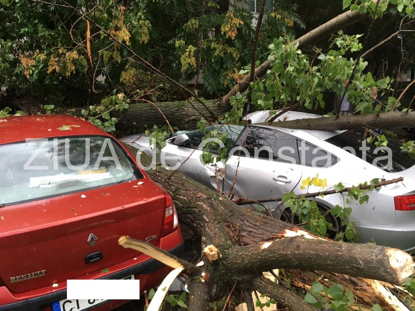 Copaci căzuți pe strada Sucevei din Constanța! Mai multe mașini, avariate! (galerie foto)
