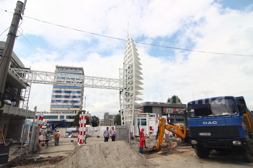 Lucrările de modernizare a intrării în Portul Constanţa de la Poarta 1 sunt în plină desfăşurare. Ieri se lucra la înălţarea pe poziţie a elementului care completează estetica amplasamentului, un totem metalic. Totemul seamănă cu renumitul hotel Burj Al Arab din Dubai.Modernizarea şi sistematizarea accesului în port pe la Poarta 1 fac parte din proiectul CIVITAS Portis, proiect european în care CN APM este partener, valoarea investiţiei fiind de circa 800.000 de euro. Va fi finalizată şi o clădire modernă în care se vor asigura spaţiile necesare autorităţilor cu atribuţii de control al intrării şi ieşirii din port. Descongestionarea traficului rutier între port şi oraş, creşterea numărului benzilor de circulaţie, cu sensurile de intrare şi ieşire clar delimitate, reprezintă obiectivele acestei ample modernizări.
