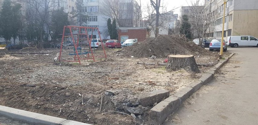 Cum se renovează un loc de joacă în Constanța? Pasul 1 - Tăiem copacii. Pasul 2 - Plecăm acasă și lăsăm