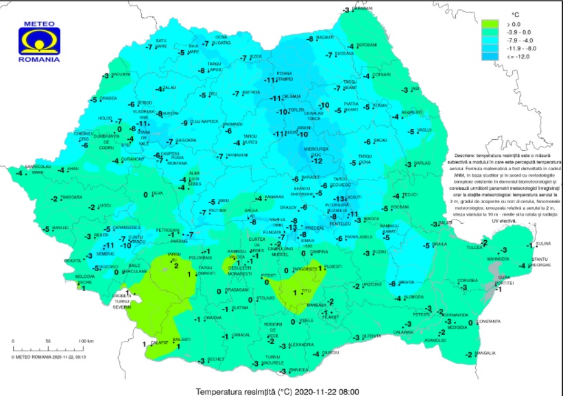 Potrivit Administrației Naționale de Meteorologie, la Constanța erau 0 grade la ora 8 dimineața, -2 grade erau înregistrate la Mangalia, Cernavodă și Adamclisi, iar la Medgidia erau resimțite -3 grade Celsius.