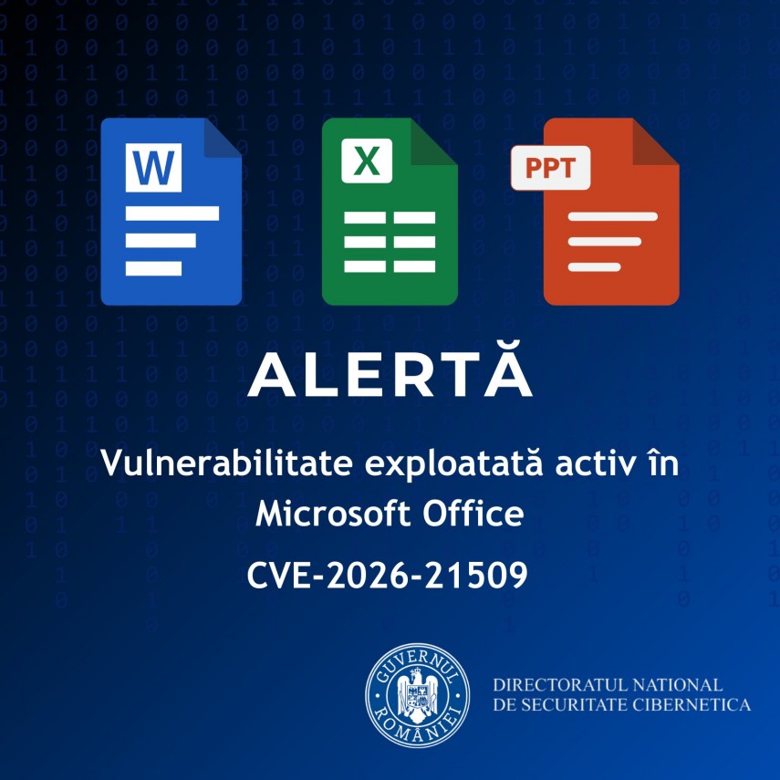 Specialiști în securitate cibernetică din cadrul Directoratului de Securitate Cibernetică au identificat o vulnerabilitate, CVE-2026-21509, de tip „security feature bypass” identificată în suita Microsoft Office, care permite ocolirea anumitor mecanisme de securitate interne. Vulnerabilitatea poate fi exploatată de un atacator neautentificat prin manipularea unor date și informații pe care aplicația le consideră de încredere atunci când evaluează nivelul de siguranță al unui document. În esență, Microsoft Office poate clasifica în mod eronat un fișier rău intenționat ca fiind legitim, transmite un comunicat din partea DNSC.
