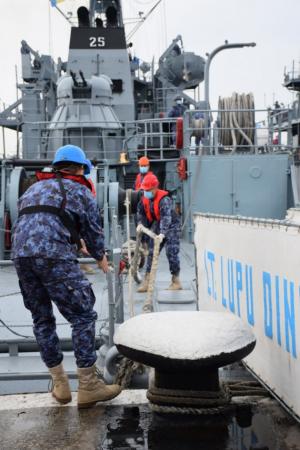 După ce a străbătut aproximativ 130 de mile marine, dragorul maritim „Locotenent Lupu Dinescu” a făcut o escală de trei zile în portul Burgas, Bulgaria, pentru refacerea capacității de luptă. Nava este integrată în gruparea navală permanentă NATO de luptă contra minelor SNMCMG-2 (Standing NATO Maritime Group), în perioada 29 octombrie – 18 noiembrie, și desfășoară misiuni în Marea Neagră împreună cu nava de sprijin logistic „Aliakmon” (Grecia), nava-comandant a grupării, vânătoarele de mine „Alghero” (Italia), „Duero” (Spania), „Orion” (Franța), „Edremit” (Turcia) și „Tsibar” (Bulgaria).
