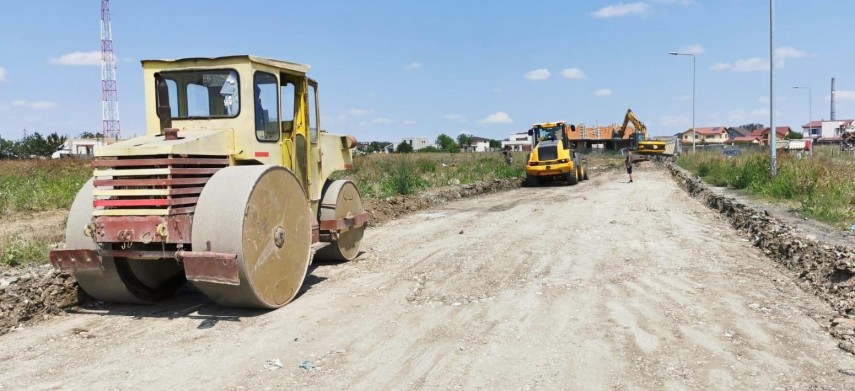 Strada de pământ este construită de la zero pentru a fi transformată într-o arteră pe care traficul rutier se poate desfășura în condiții optime.