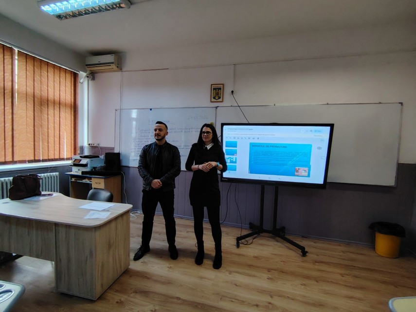 Evenimentul, desfășurat pe data de 30 martie 2026, i-a avut ca protagoniști pe consilierii de probațiune Andreea Chiriță și Cătălin Trandafir, care au interacționat direct cu elevii claselor a VIII-a, a IX-a, a X-a și a XI-a.