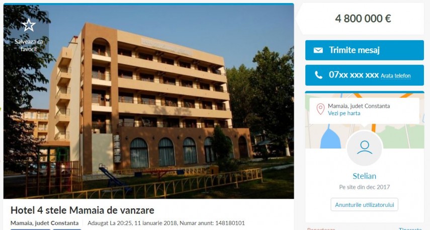 Hotelul Richmond din Mamaia, cotat la patru stele, a fost scos la vânzare, inclusiv pe platforma online OLX. Potrivit anunţului postat de vânzător, unitatea de cazare se vinde contra sumei de 4,8 milioane de euro. Hotelul a fost construit în 2008 şi a fost renovat şi modernizat în 2017 şi are o suprafaţă utilă este de 3.512 mp. Imobilul are 51 de camere, un restaurant cu 140 de locuri în interior şi 20 în exterior, trei săli de conferinţă, precum şi o piscină interioară şi una exterioară.Conform Oficiului Naţional al Registrului Comerţului, firma Hotel Richmond SRL a fost înfiinţată în 2007 şi are sediul social în staţiunea Mamaia. Asociaţii firmei sunt Gheorghe Bujduveanu şi Aurica Bujduveanu, cea din urmă având şi calitatea de administrator. Domeniul de activitate este reprezentat de „hoteluri şi alte facilităţi de cazare similare“.