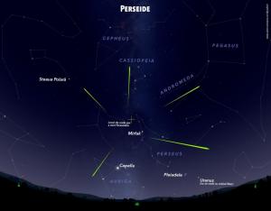 Curentul de meteori are radiantul în constelaţia Perseu, de unde i se trage şi numele. Constelaţia Perseu (în latină Perseus) este o constelaţie din emisfera nordică traversată de Calea Lactee, potrivit www.timeanddate.com. Este bogată în stele, printre care şi steaua dublă Algol. Aceasta este prima stea variabilă descoperită, ea fiind observată şi de arabi.