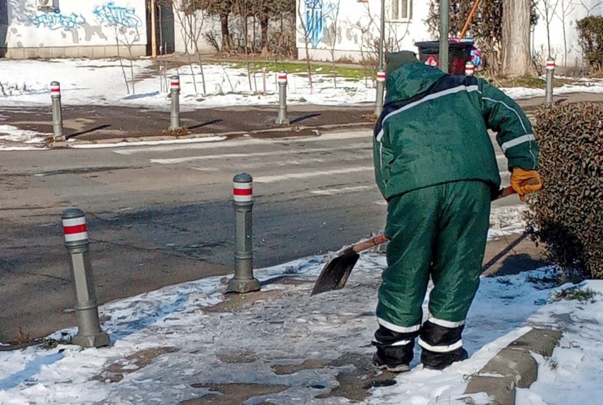 FOTO: Autoritățile locale din Constanța intensifică acțiunile de curățare a gheții pe domeniul public