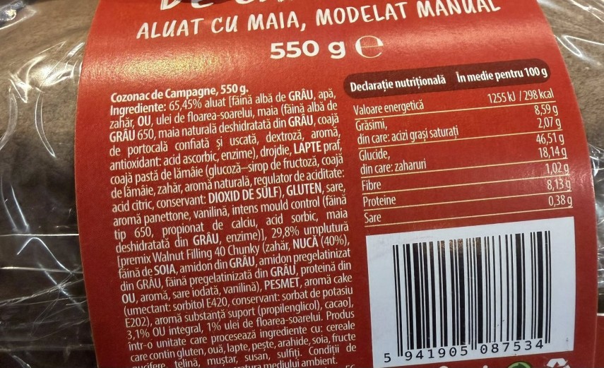 Regăsiți mai jos etichete ale unor cozonaci din comerț. Informarea corectă este esențială pentru ca fiecare consumator să poată face alegeri în cunoștință de cauză.