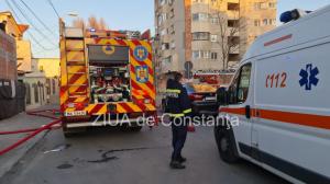 Incendiu la mansarda unui bloc de pe strada Soveja din Constanța. Bărbat găsit inconștient