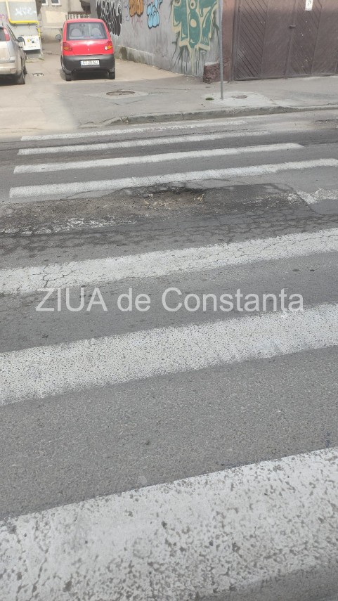 FOTO-VIDEO. Groapă periculoasă la trecerea de pietoni de pe strada Nicolae Iorga, aproape de intersecția cu bulevardul Alexandru Lăpușneanu din Constanța