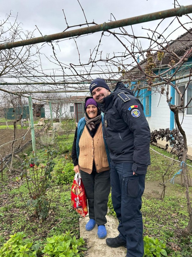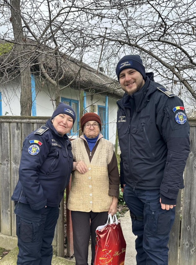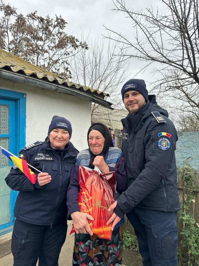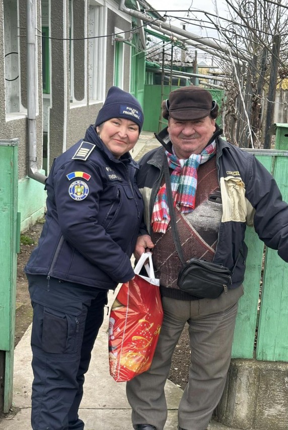 FOTO. Polițiștii de frontieră aduc spiritul Crăciunului în casele vârstnicilor din Chilia Veche