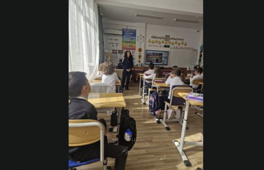 FOTO: Polițiștii din Tulcea, acțiune de prevenire a violenței și cyberbullying-ului la Școala Gimnazială
