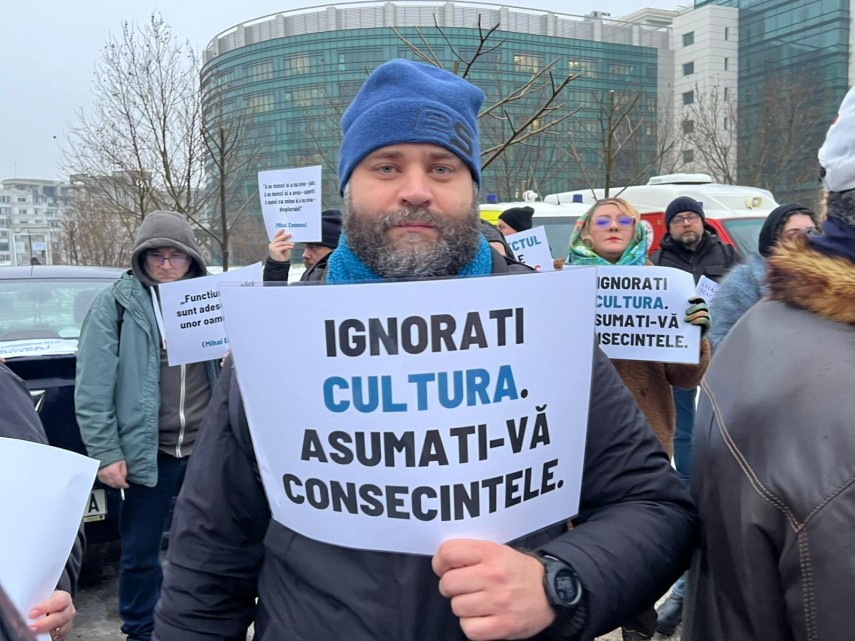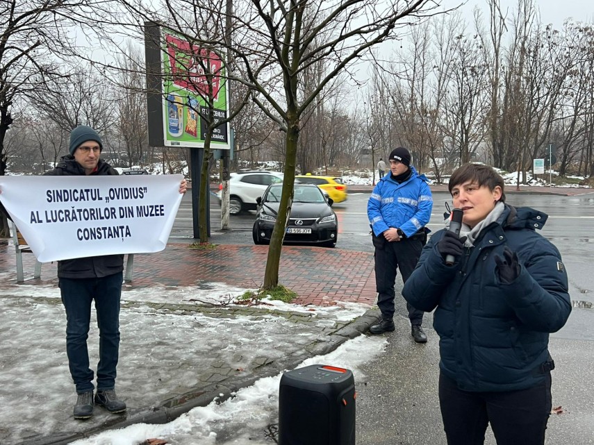 FOTO Sindicaliștii lucrătorilor din Muzee Constanța, în protest în fața Ministerului Culturii
