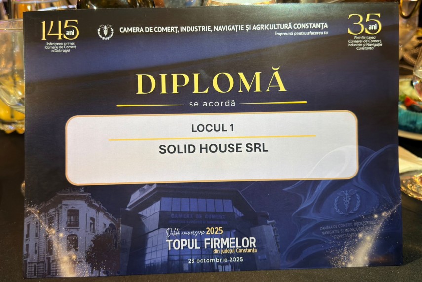 FOTO Solid House, desemnată lider în construcții! A obținut Locul 1 în Topul Firmelor din Județul Constanța 2025