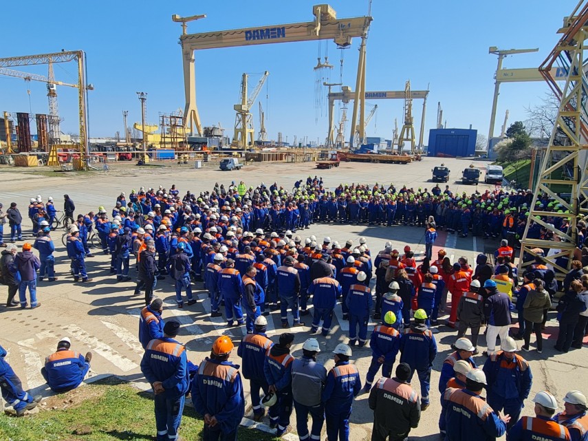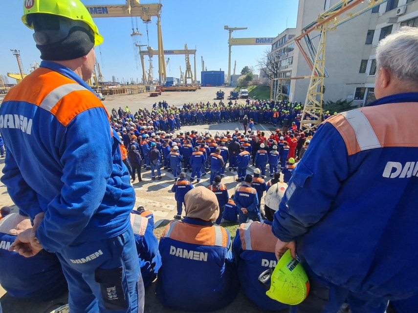 FOTO. Știri Constanța Protestul angajațiilor Șantierul Naval Damen Mangalia continuă și astăzi!
