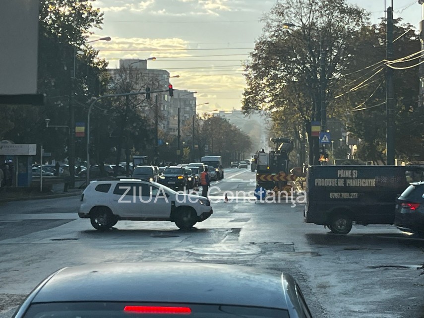 FOTO Trafic îngreunat în Constanța în urma lucrărilor de frezare a carosabilului pe bulevardul Tomis, între bulevardul Alexandru Lăpușneanu și strada Soveja