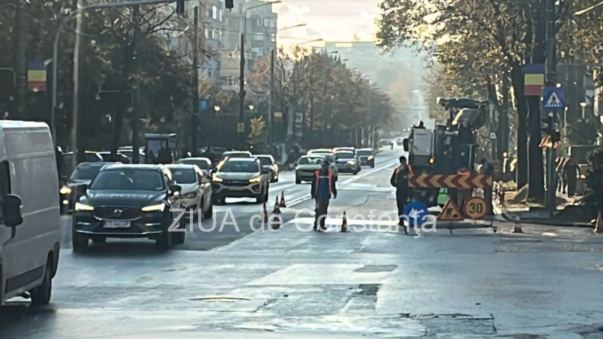 FOTO: Trafic îngreunat în Constanța în urma lucrărilor de frezare a carosabilului pe bulevardul Tomis, între