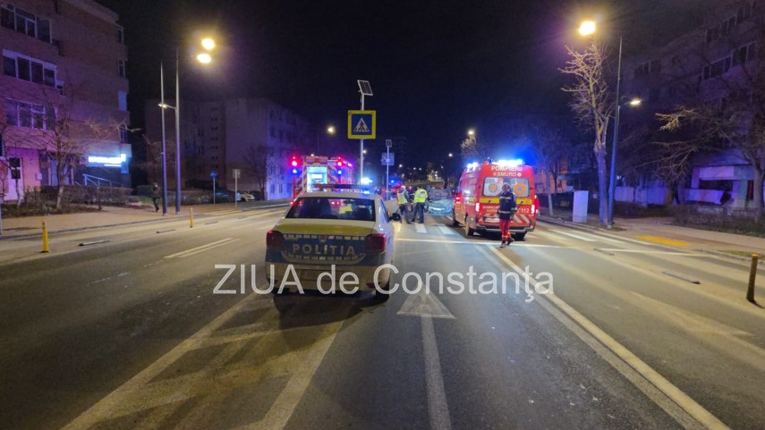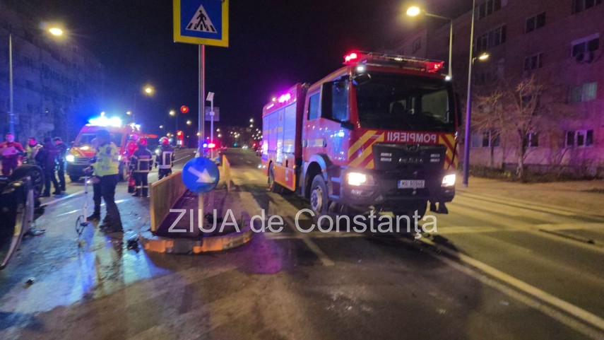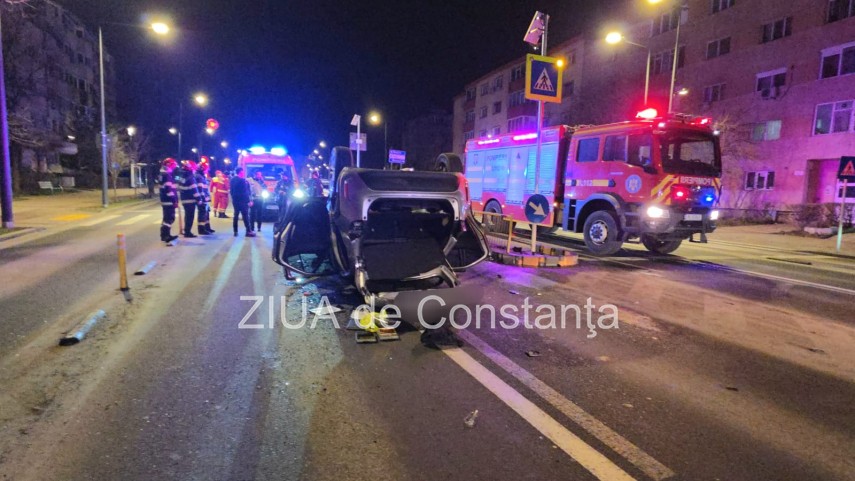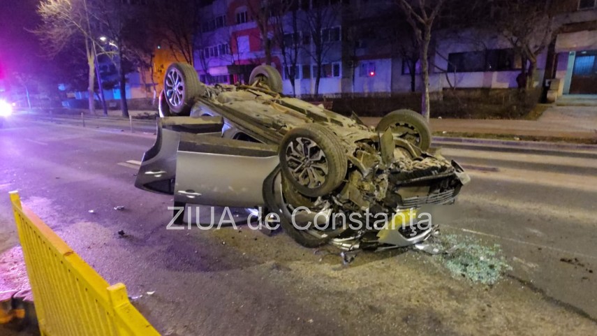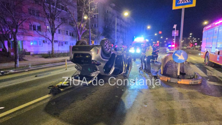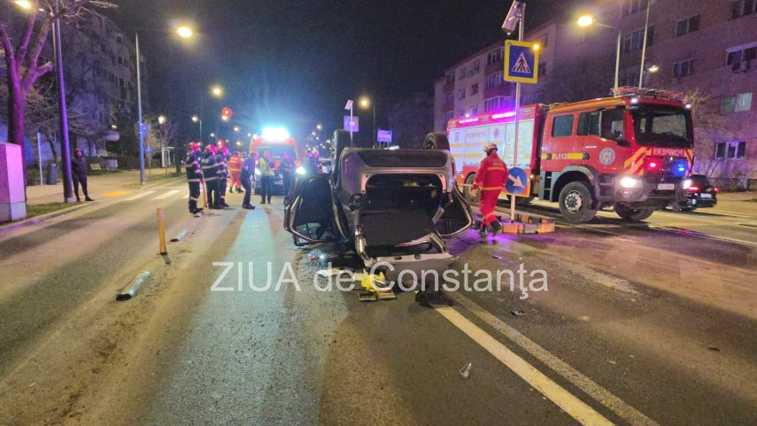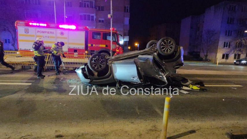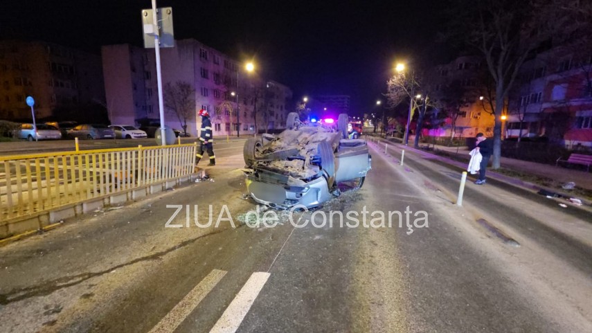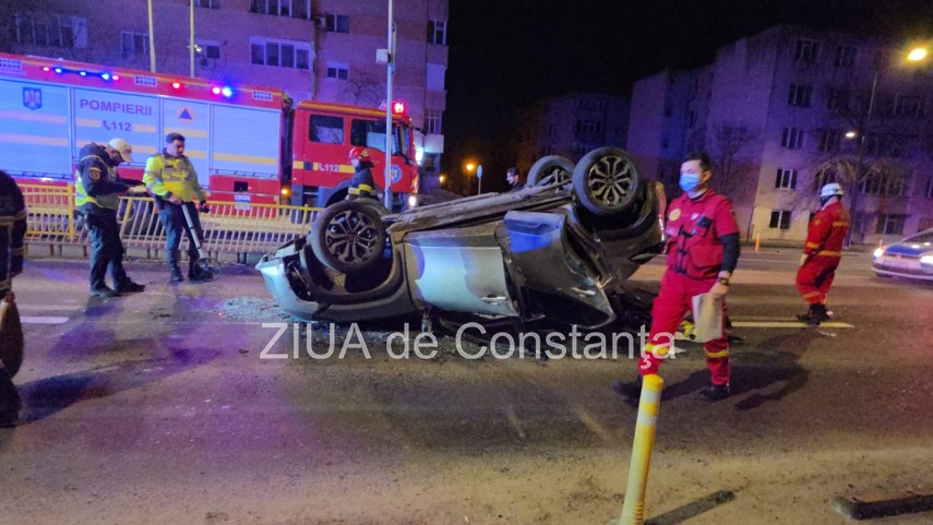 FOTO+VIDEO Accident rutier pe bulevardul 1 Mai din Constanța! Un autoturism s-a răsturnat! Trei tineri, implicați