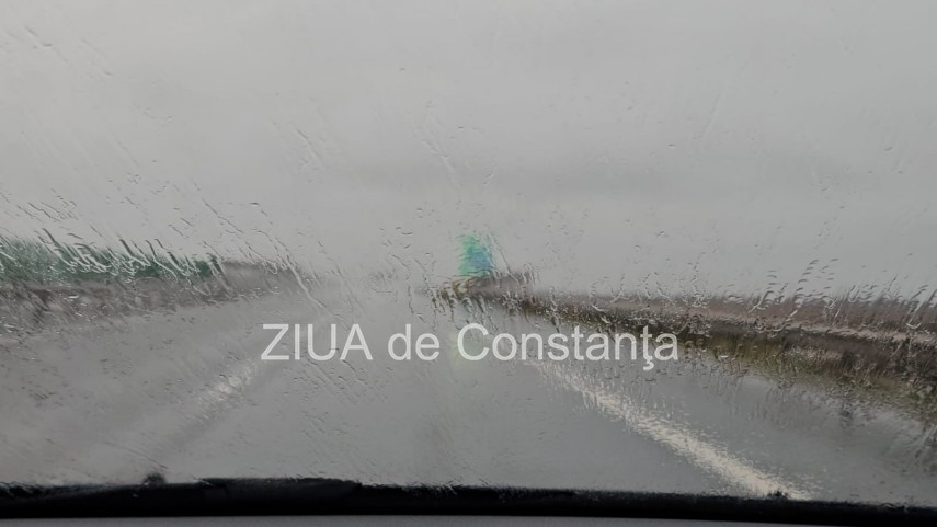 FOTO-VIDEO. Atenție, șoferi! Plouă pe A4. Vizibilitate redusă