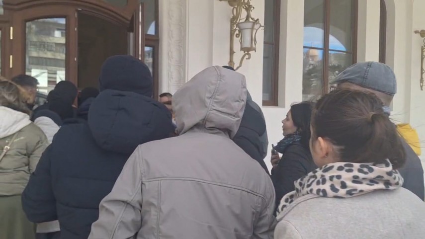 Astăzi, 3 ianuarie 2026, mai multe persoane au fost surprinse formând o coadă la intrarea în Cazinou, profitând de atmosfera de început de an pentru a admira arhitectura restaurată a clădirii.