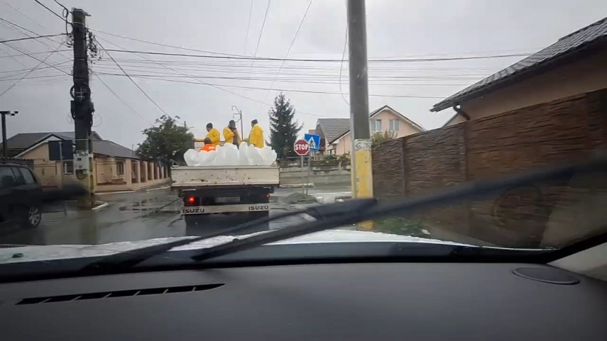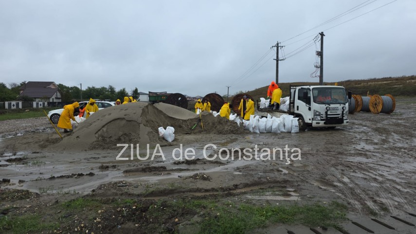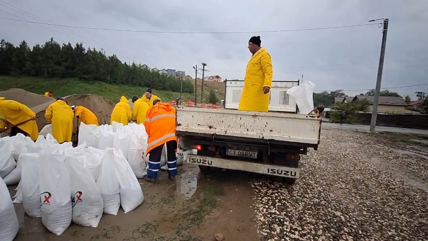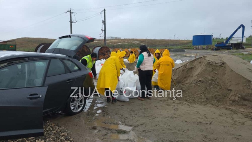 FOTO+VIDEO. Cod roșu de ploi în Constanța! Primăria Valu lui Traian a înființat un Centru de Permanență și distribuie saci de nisip