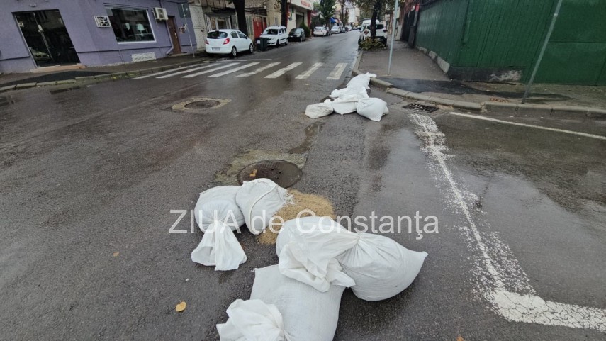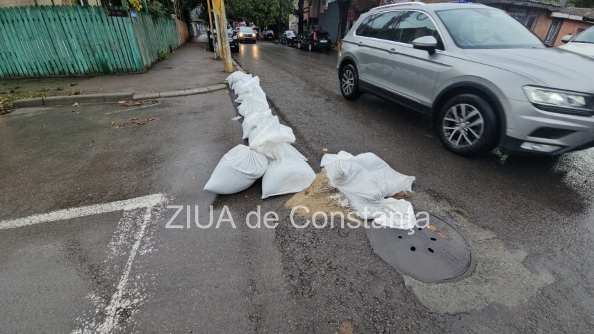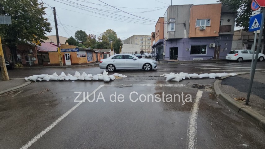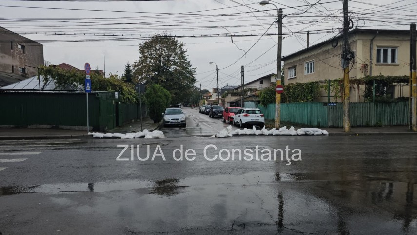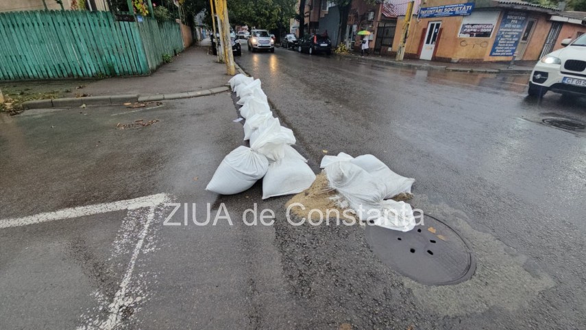FOTO+VIDEO Cod roșu de ploi la Constanța! Saci de nisip montați pe străzi, unii rupți de localnici