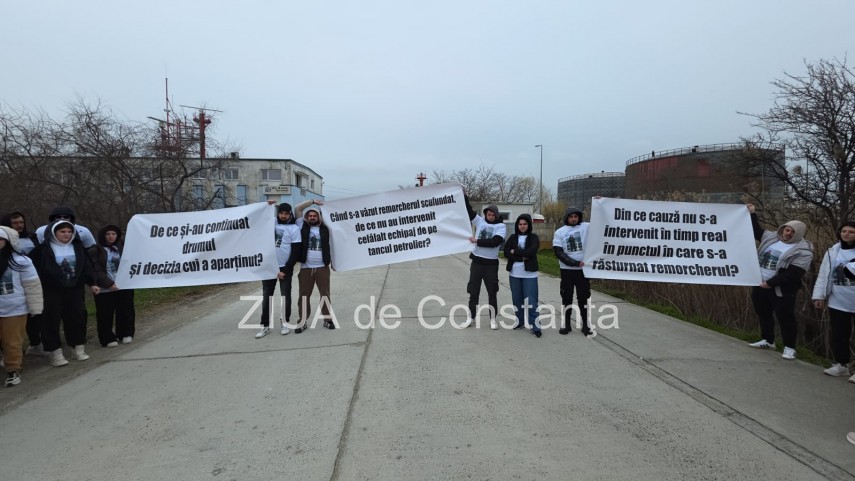 Astăzi, 21 martie 2026, în aceste momente, în zona Portului Midia din Constanța, familiile marinarilor dispăruți în apele Mării Negre s-au strâns pentru a cere autorităților să reînceapă căutările.