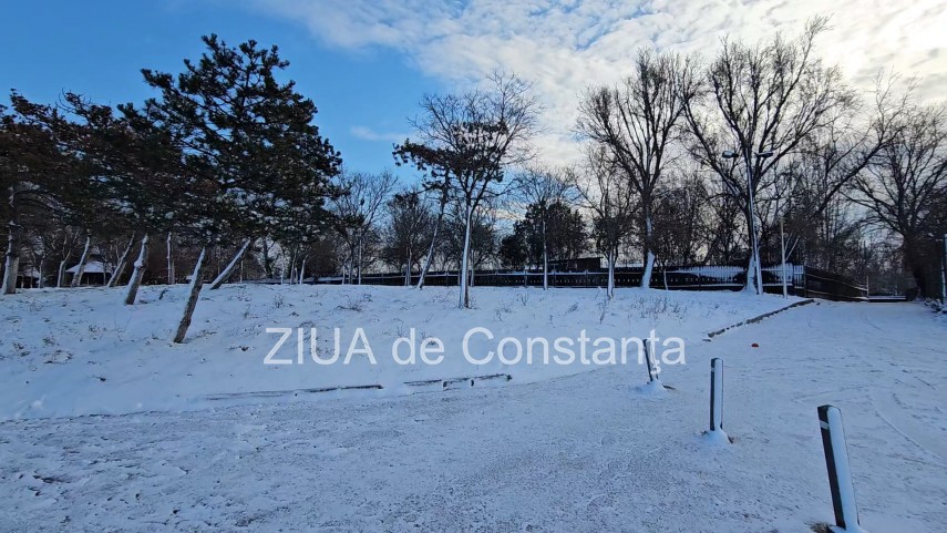 FOTO+VIDEO Cum arată Parcul Tăbăcăriei din Constanța după primele zăpezi și temperaturi scăzute