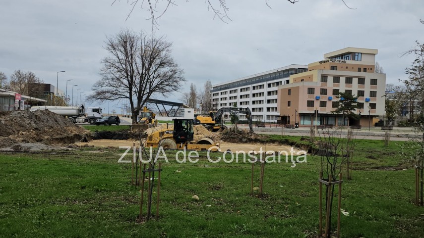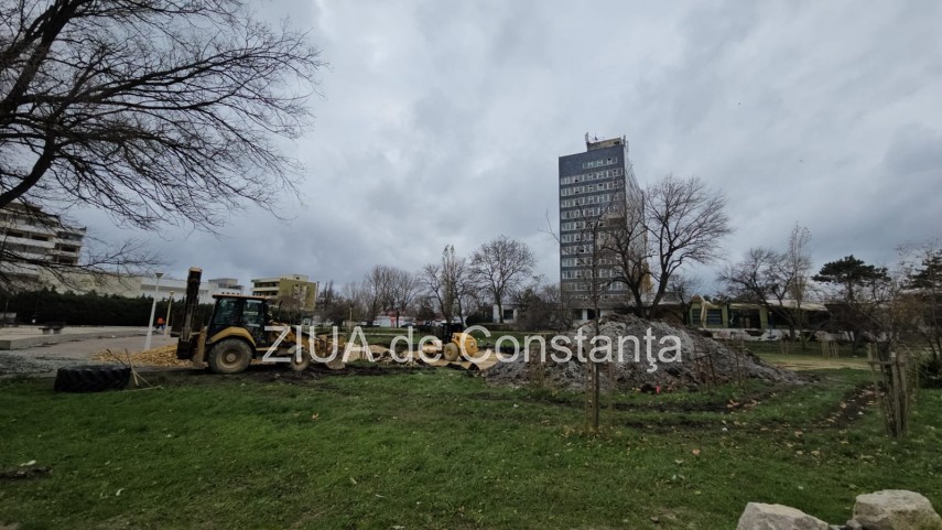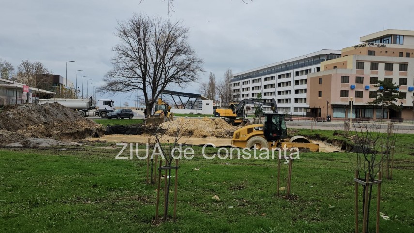 FOTO+VIDEO Fostul bazin din stațiunea Mamaia, zona Perla, transformat în spațiu comercial. Lucrările au început