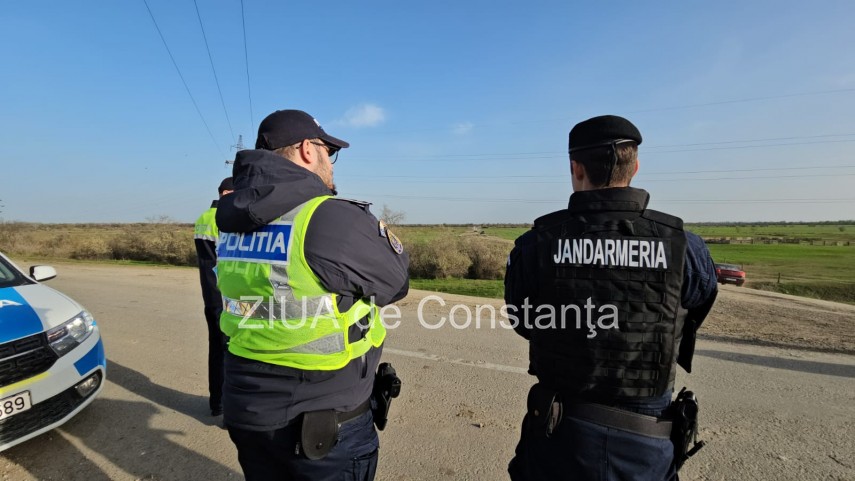 La ieșirea din Ceatalchioi spre localitatea Plauru, circulația este oprită de echipaje de poliție.