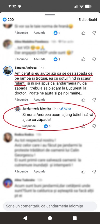 FOTO+VIDEO Jandarmii au sărit în ajutorul unei familii cu dizabilități pentru a deszăpezi rampa de acces necesară deplasării cu scaunul rulant