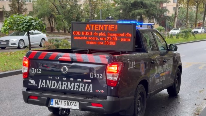 FOTO+VIDEO: Jandarmii, pe străzile din Constanța! Mesaje de avertizare pentru populație din cauza codului roșu