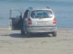 Un autoturism a rămas blocat în nisip. Șoferul a încercat să circule cu mașina pe plajă, dar a rămas împotmolită.