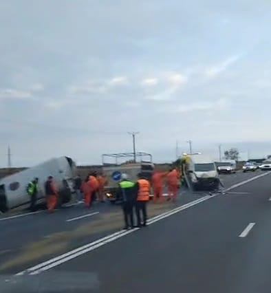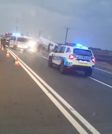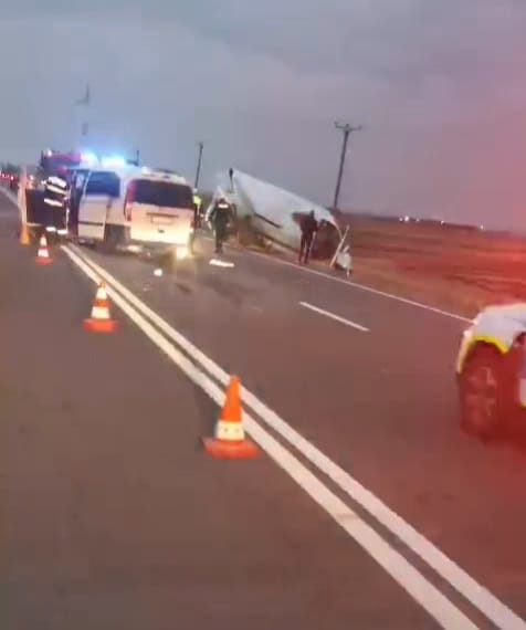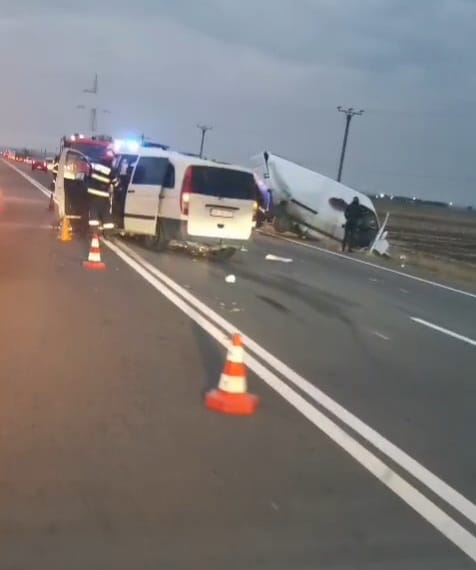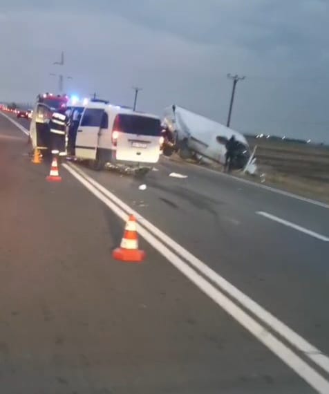 FOTO+VIDEO: Microbuz de călători implicat într-un accident rutier în județul Giurgiu! Mai multe persoane,