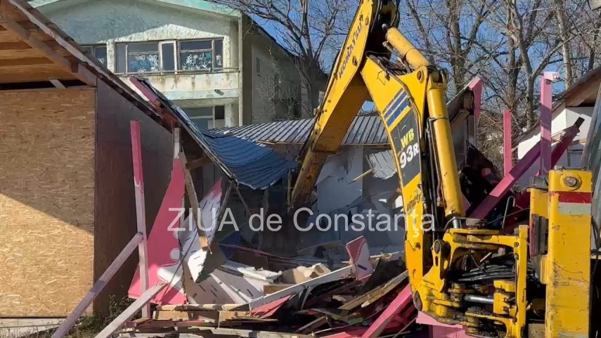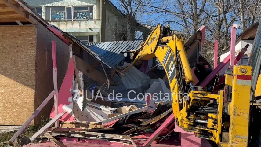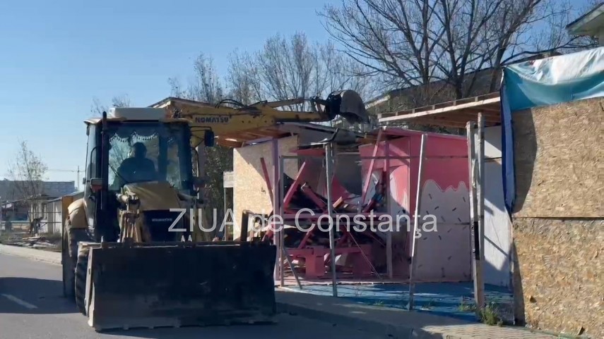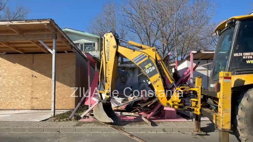 FOTO+VIDEO Operațiune de demolare a mai multor construcții în zona plajei din Năvodari
