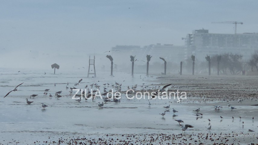 Plaja din zona Mamaia Nord este astăzi, 27 ianuarie 2026, acoperită de scoici de mai multe tipuri, rapane, midii.