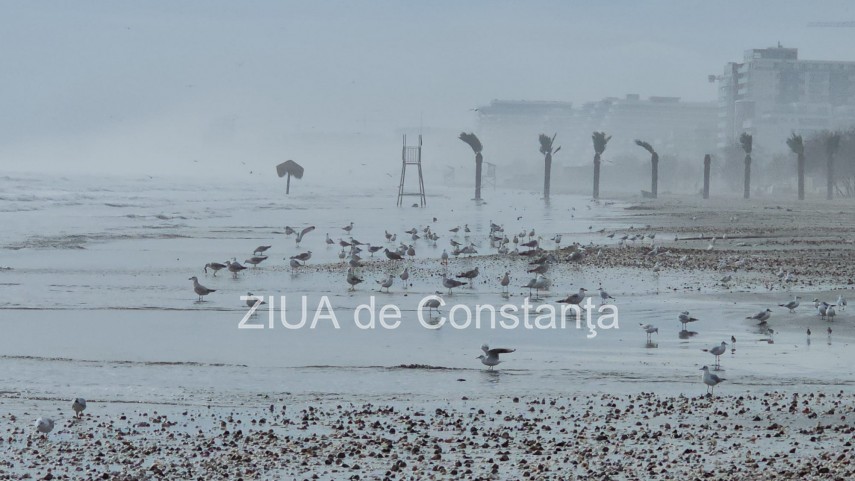 FOTO+VIDEO: Plaja din Mamaia Nord, acoperită de scoici mari. Marea a înghițit o porțiune din mal
